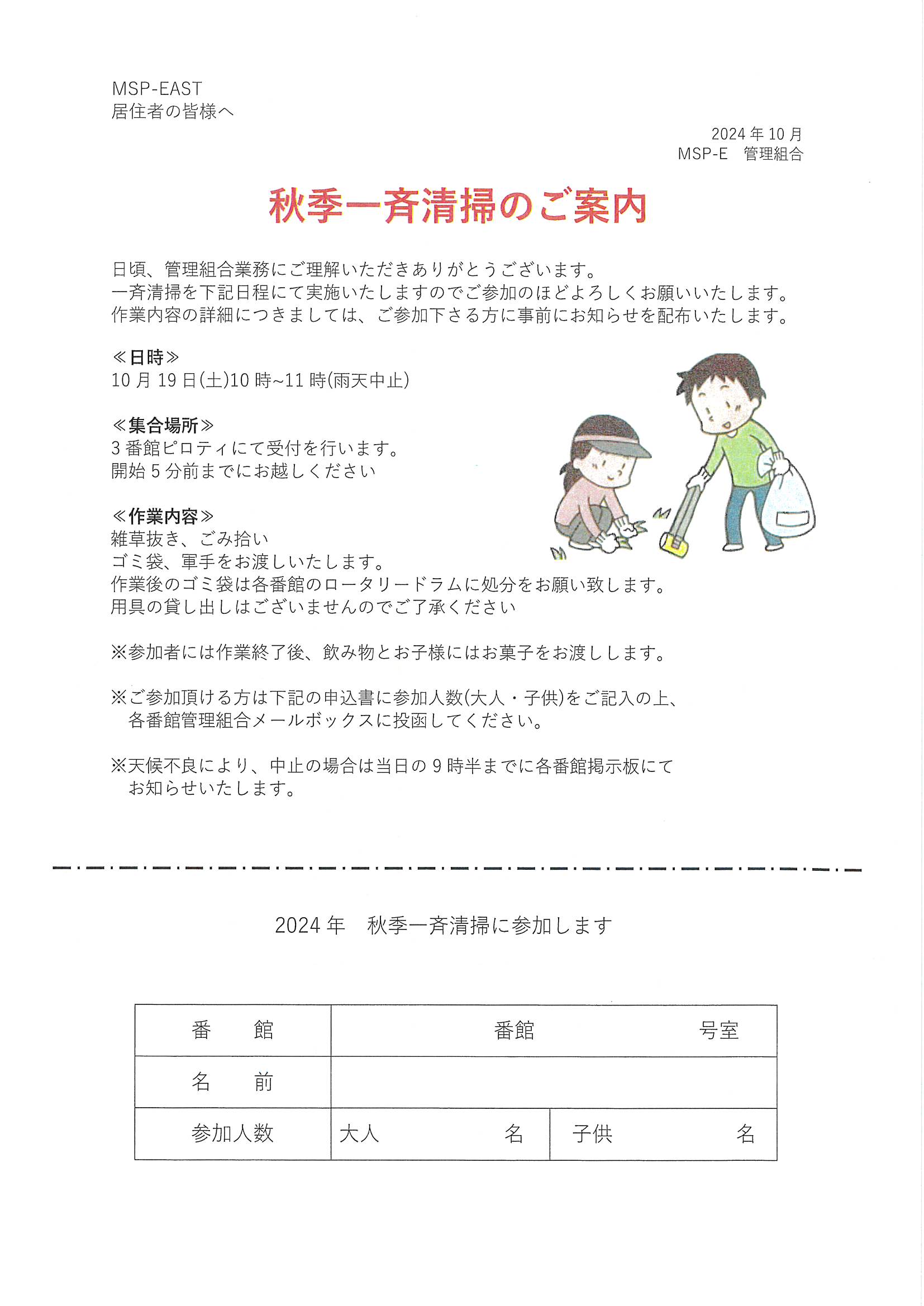 10月19日 秋季一斉清掃のご案内