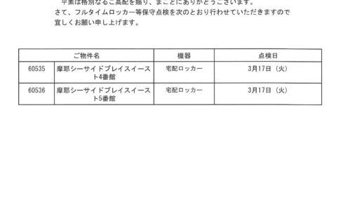 【4・5番館】宅配ロッカー保守点検のお知らせ