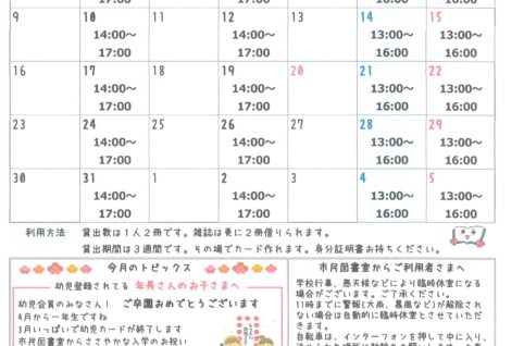 2026年3月度MSPイースト月間予定表及びゴミ回収日