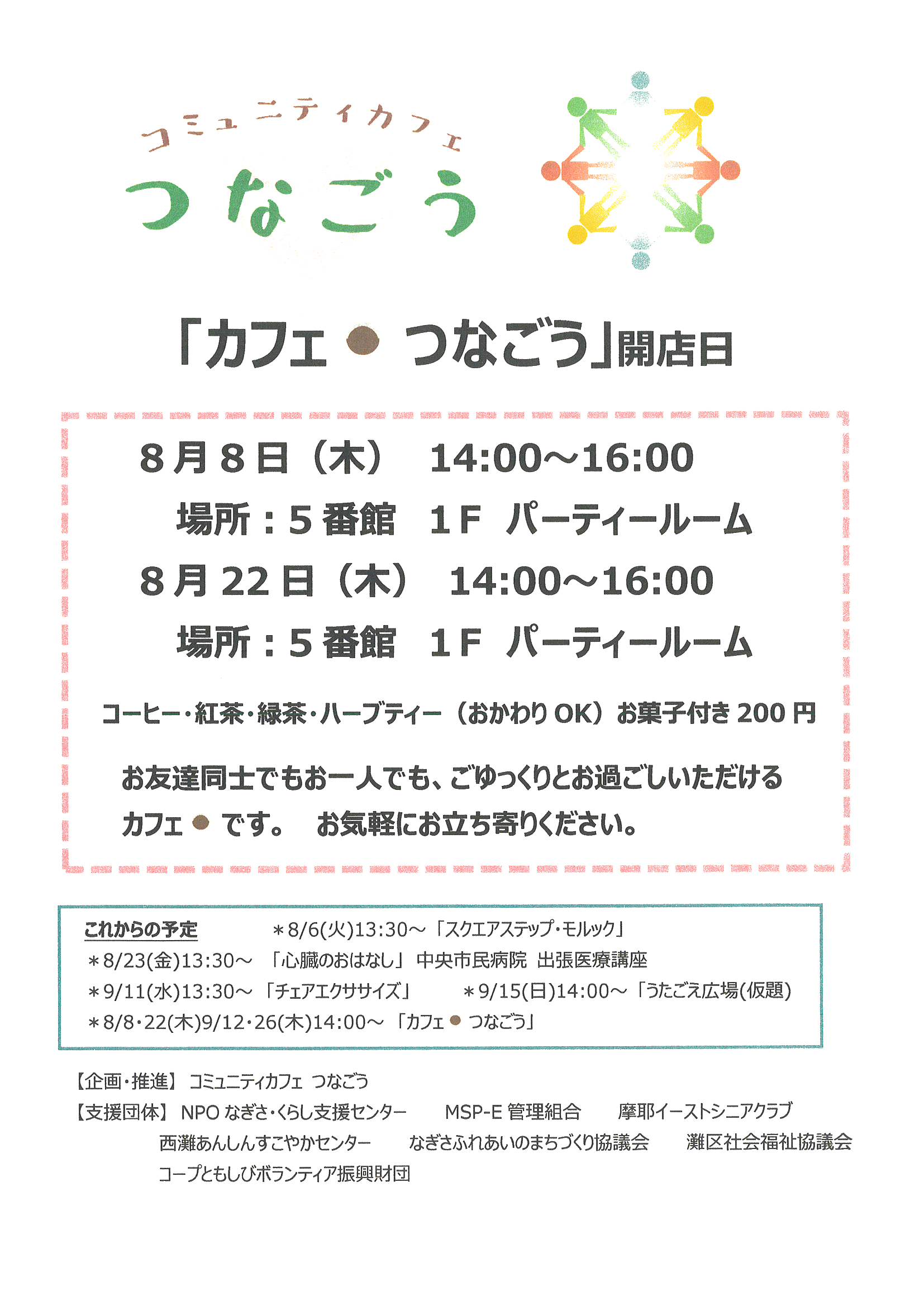 8月8日・22日(木)「カフェ・つなごう」開店日