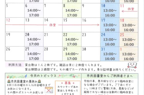 なだのはま小学校市民図書室ニュース8月号
