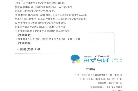 [4番館]リフォーム工事のお知らせ