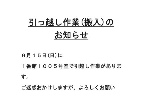 [1番館]引っ越し作業のお知らせ