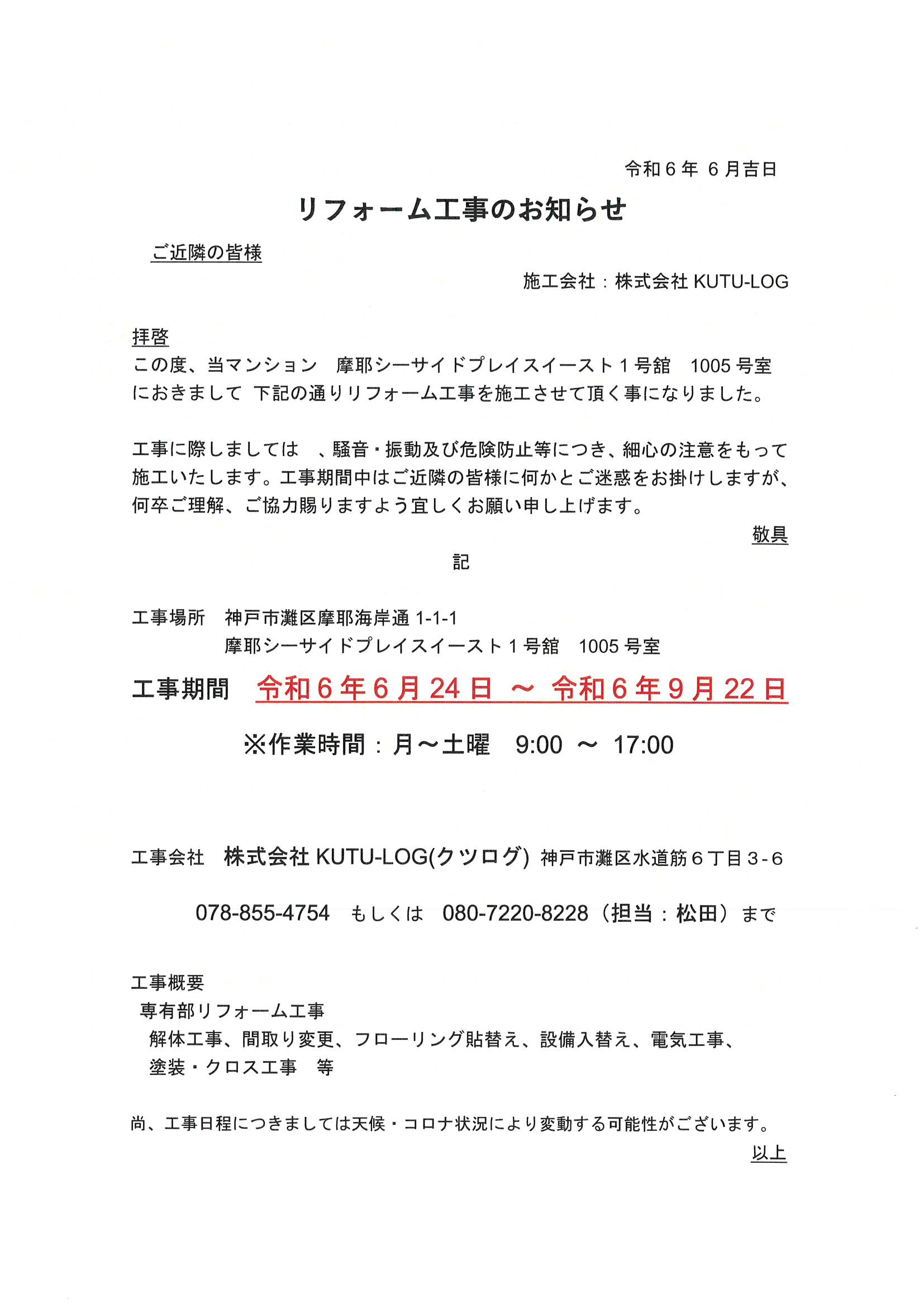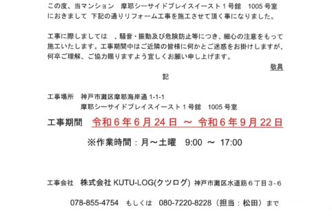 [1番館]リフォーム工事のお知らせ
