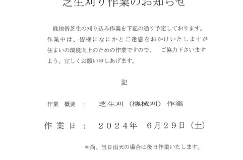 6月29日(土)芝刈り作業のお知らせ