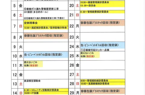 2024年7月度MSP-E月間予定表及びゴミ回収日