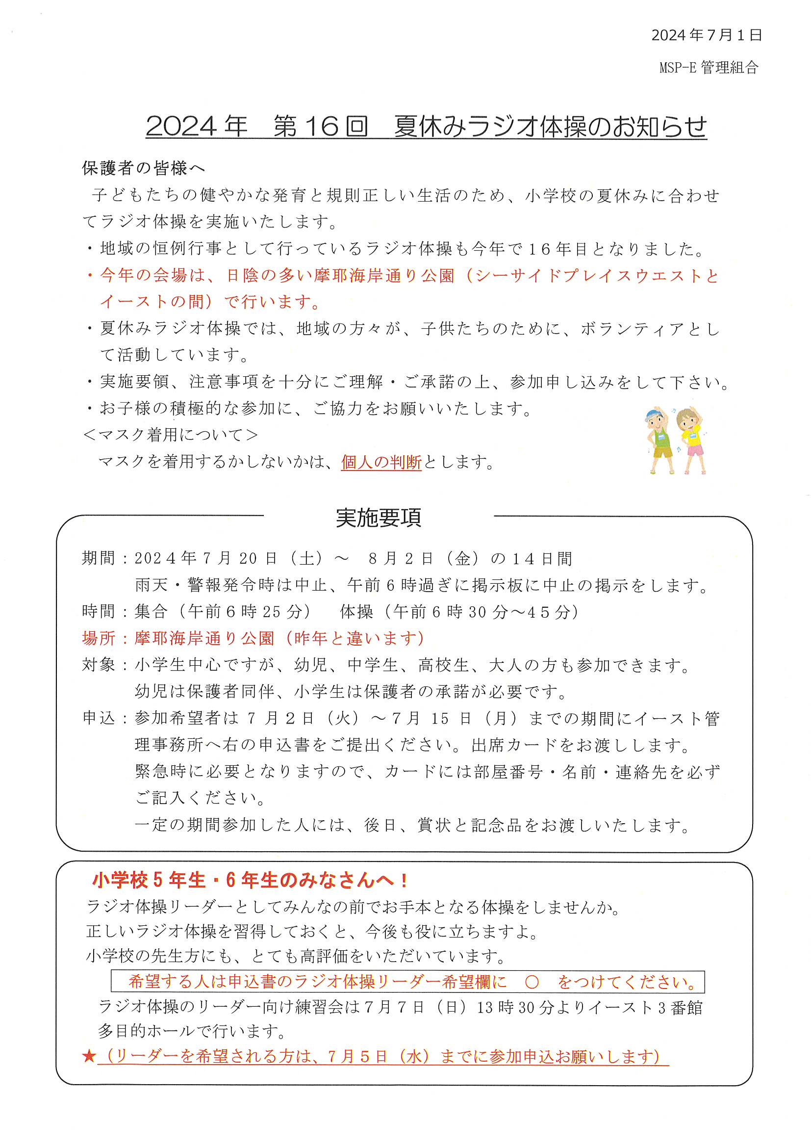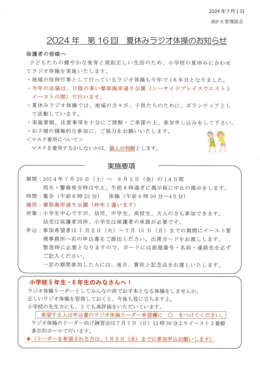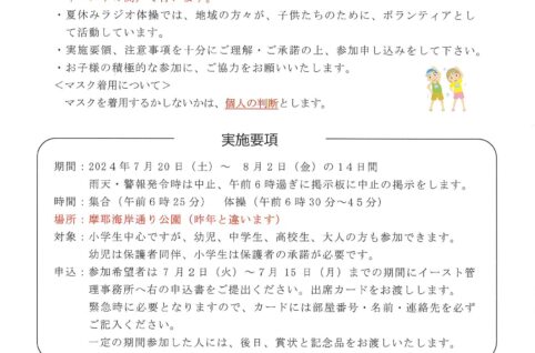 2024年第16回夏休みラジオ体操のお知らせ