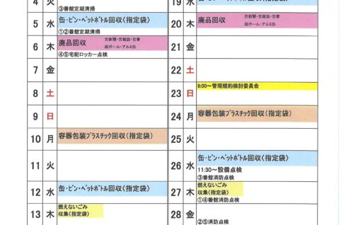 2024年6月度MSP-E月間予定表及びゴミ回収日