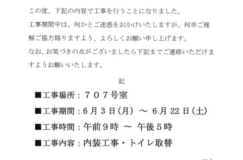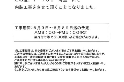 [1番館]リフォーム工事のお知らせ