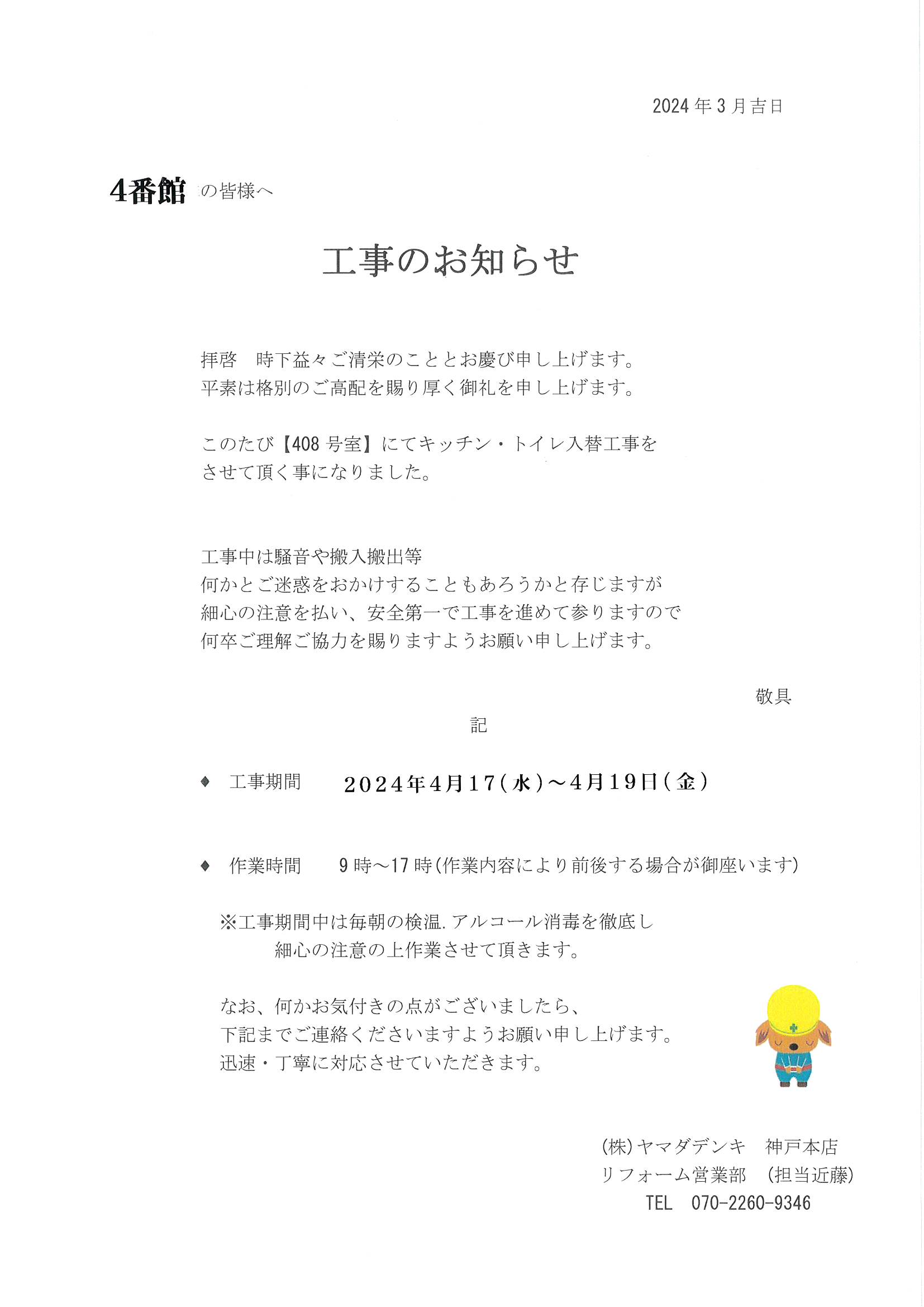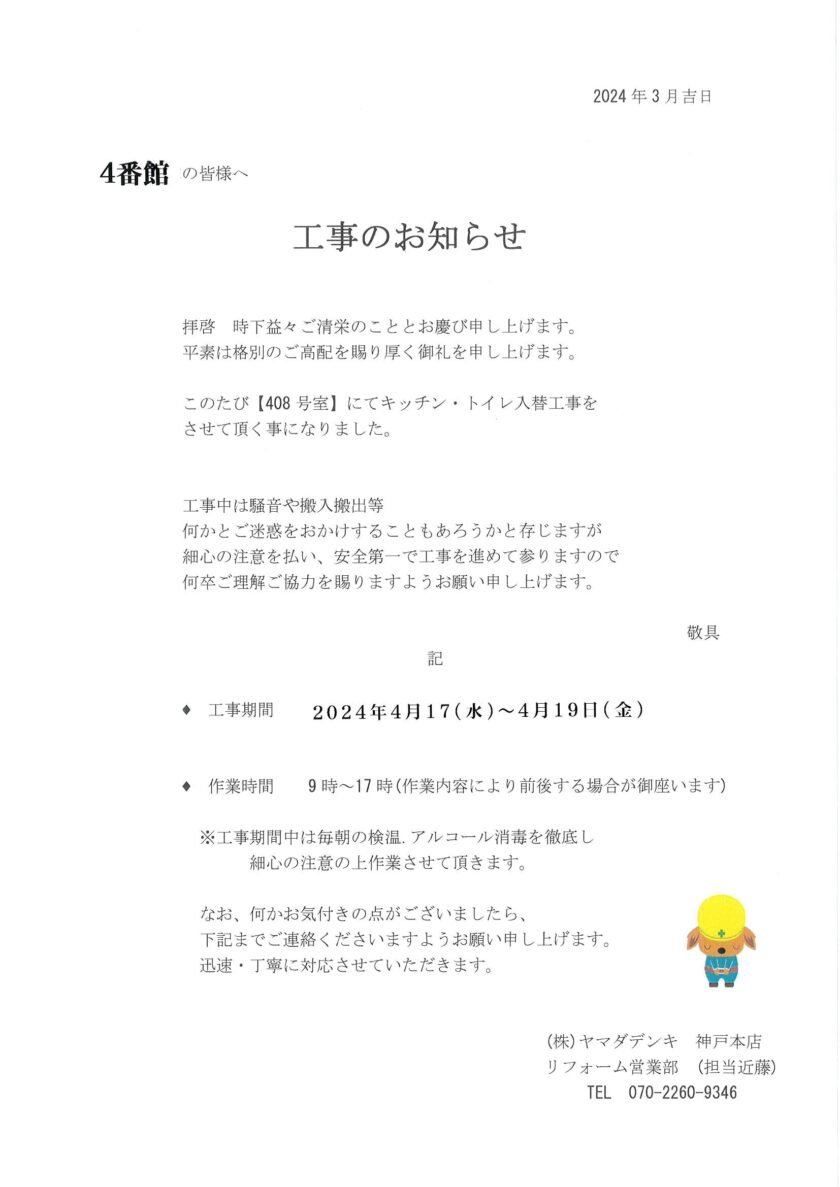 [4番館]リフォーム工事のお知らせ