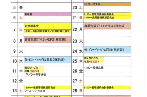 2024年4月度MSP-E月間予定表及びゴミ回収日