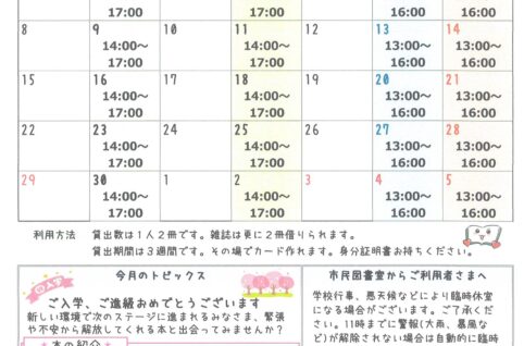 なだのはま小学校市民図書室ニュース4月号