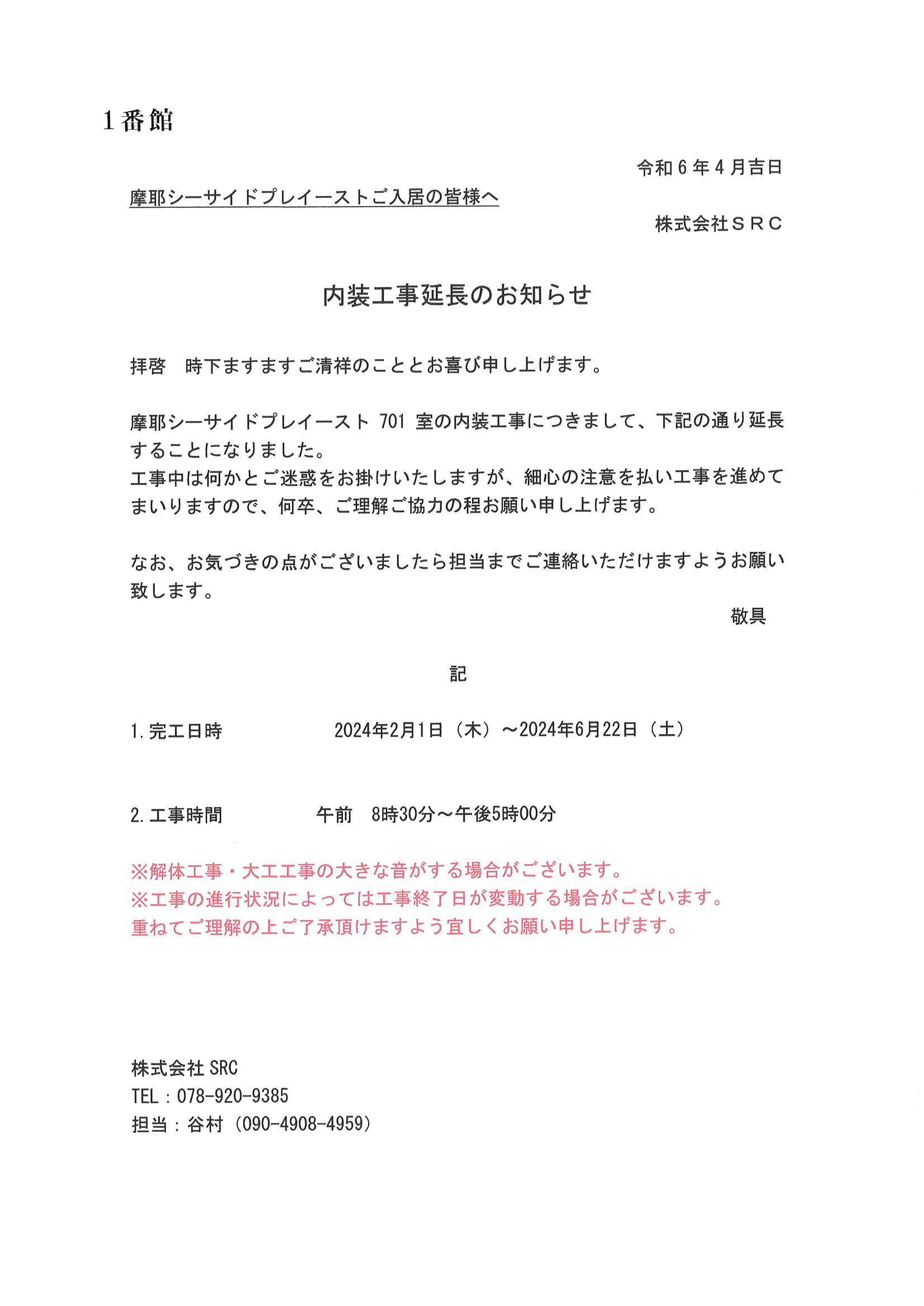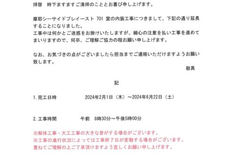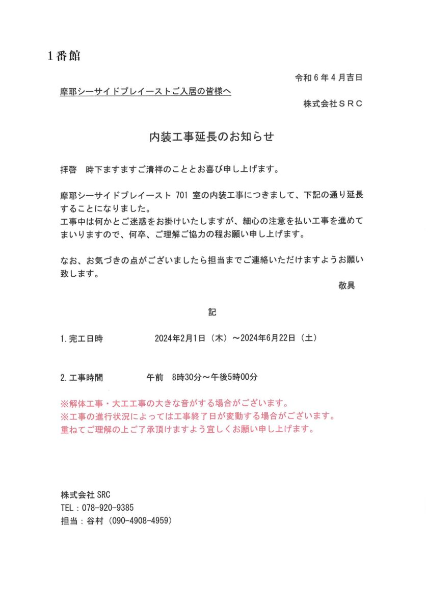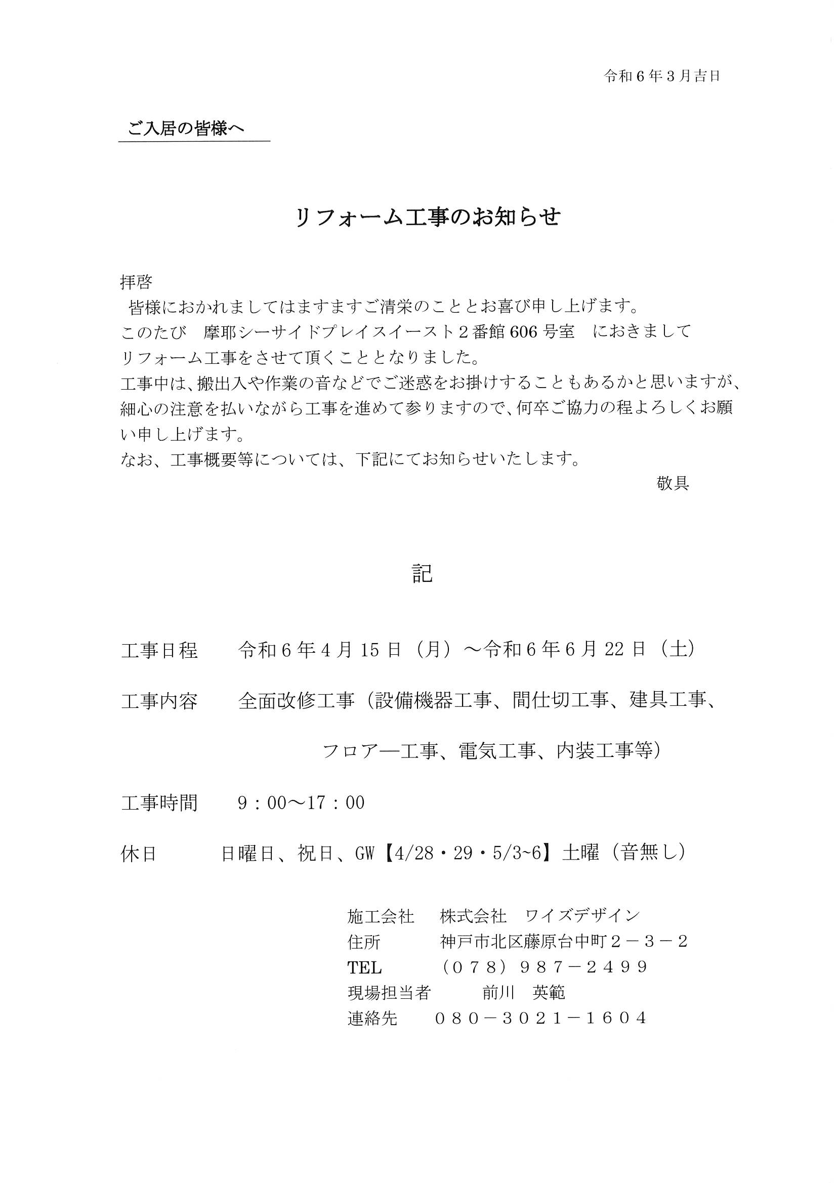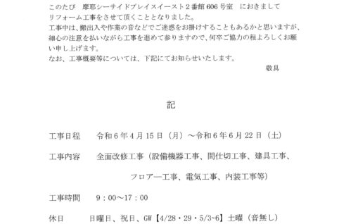 [1番館]リフォーム工事のお知らせ