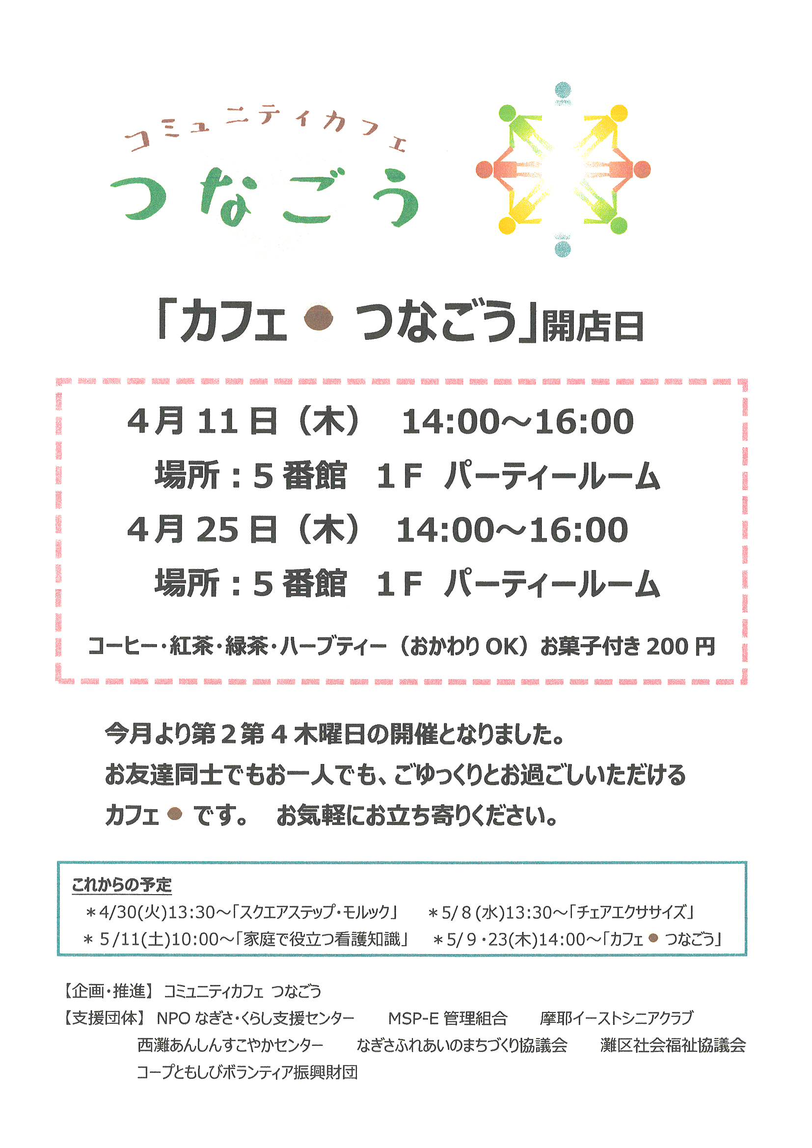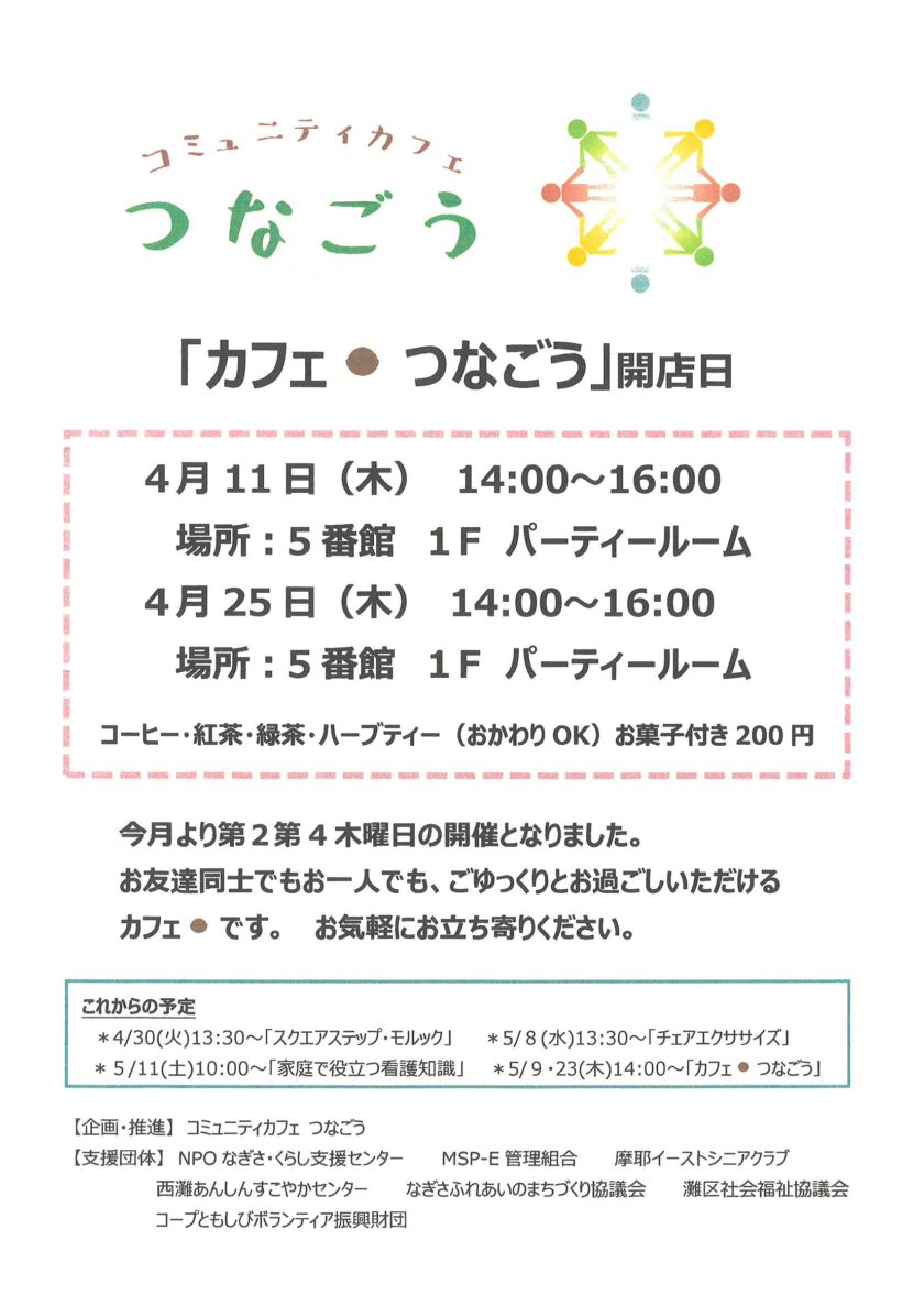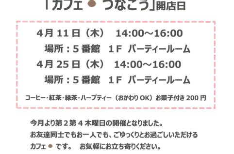 4月11・25日(木)「カフェ・つなごう」開店日