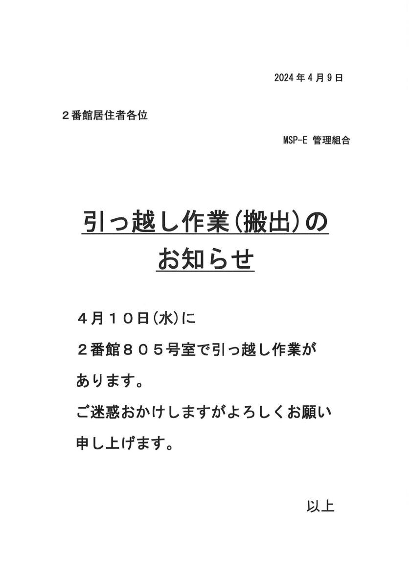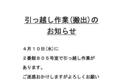 [2番館]引っ越し作業のお知らせ