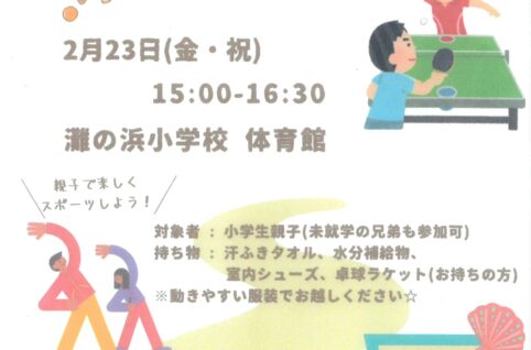 2月23日(金・祝)親子卓球/灘の浜小学校体育館