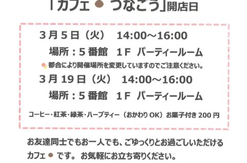 3/5・3/19「カフェ☕つなごう」開店日