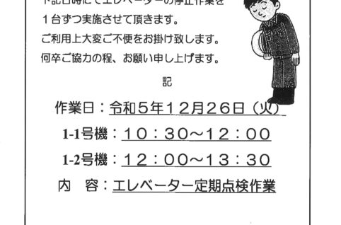 12/26(火)エレベーター点検のお知らせ(1番館・4番館・5番館)