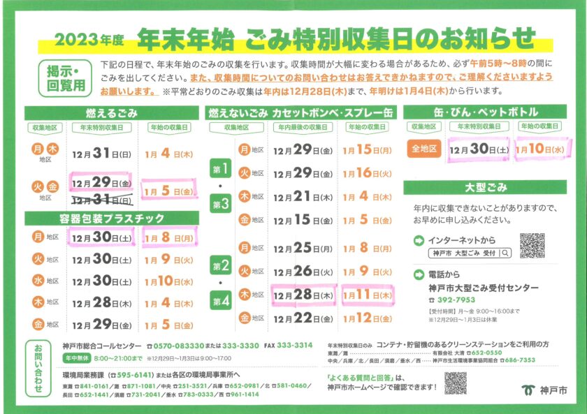 2023年度 年末年始ごみ特別収集日のお知らせ