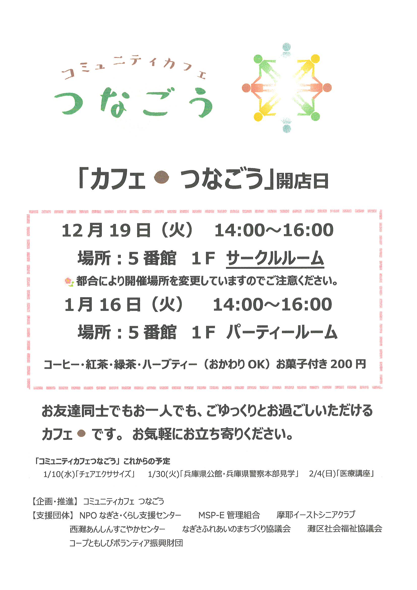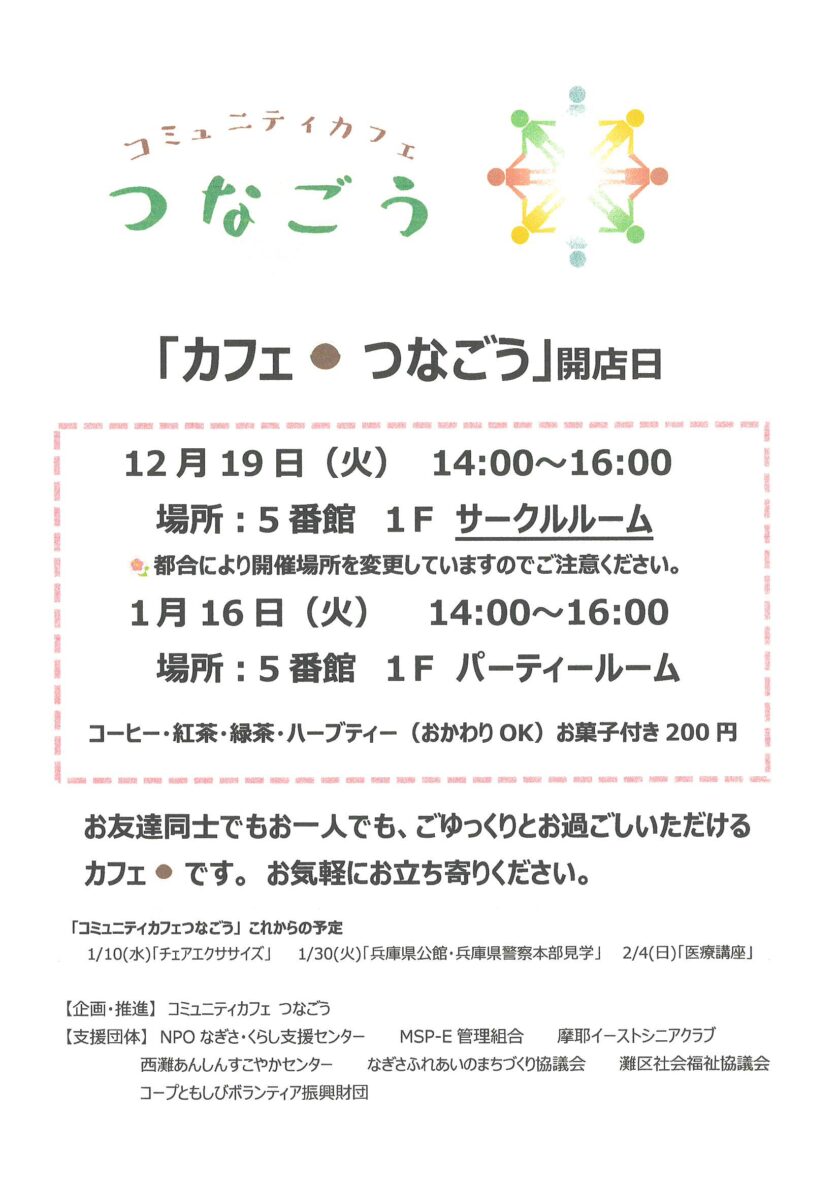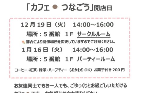 コミュニティカフェ つなごう 開店日12/19・1/16