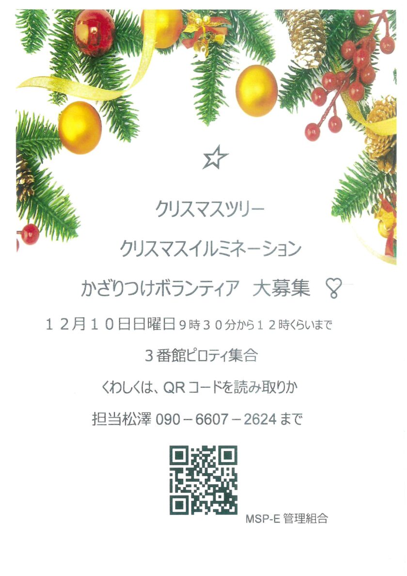 クリスマスイルミネーションかざりつけボランティア大募集!