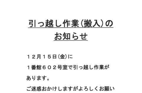[1番館]引っ越し作業(搬入)のお知らせ
