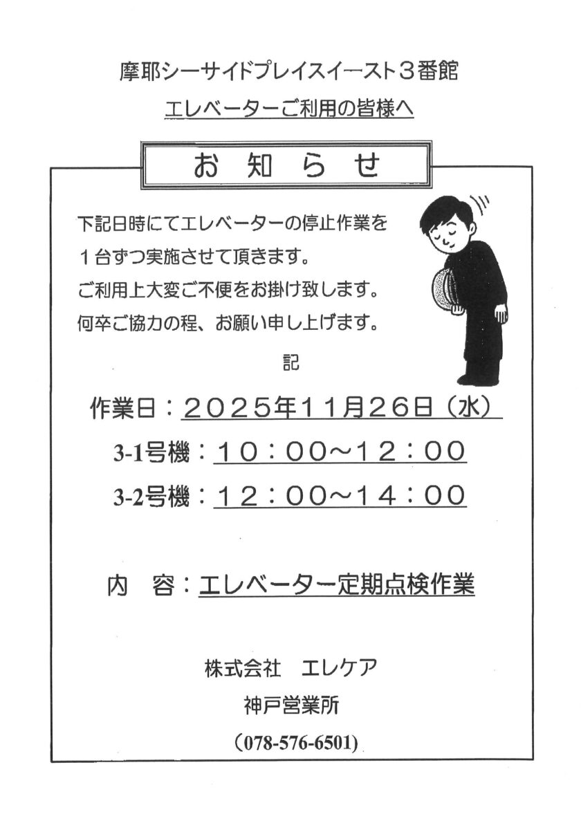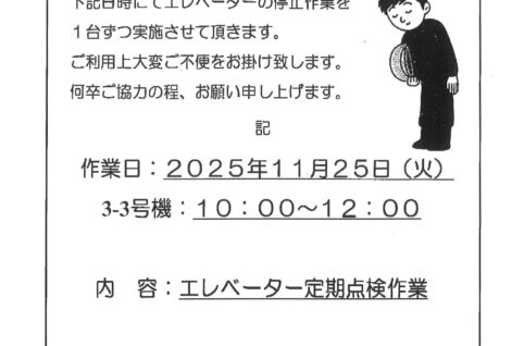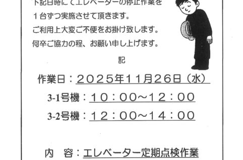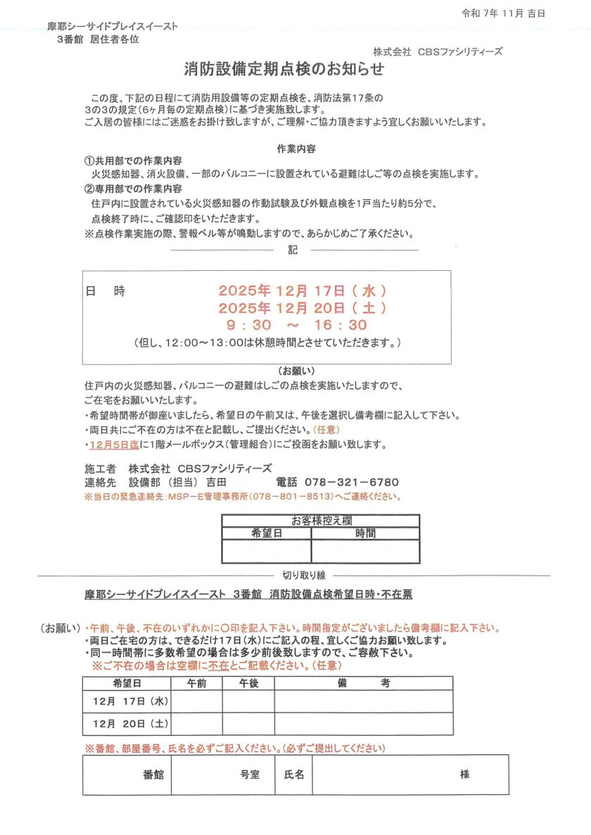 [3番館]消防設備定期点検のお知らせ