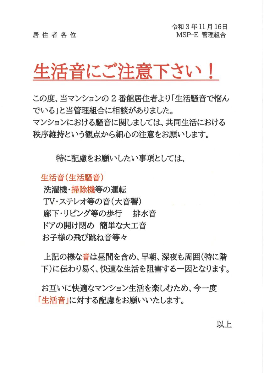 [2番館]生活音にご注意ください!