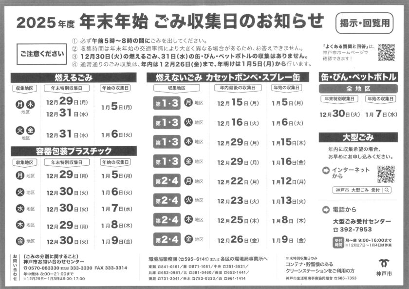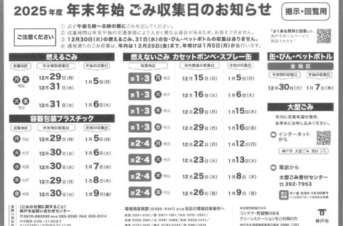 2025年度 年末年始ゴミ収集日のお知らせ