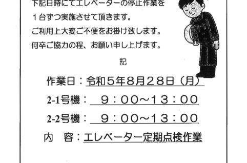 2番館エレベーター点検のお知らせ