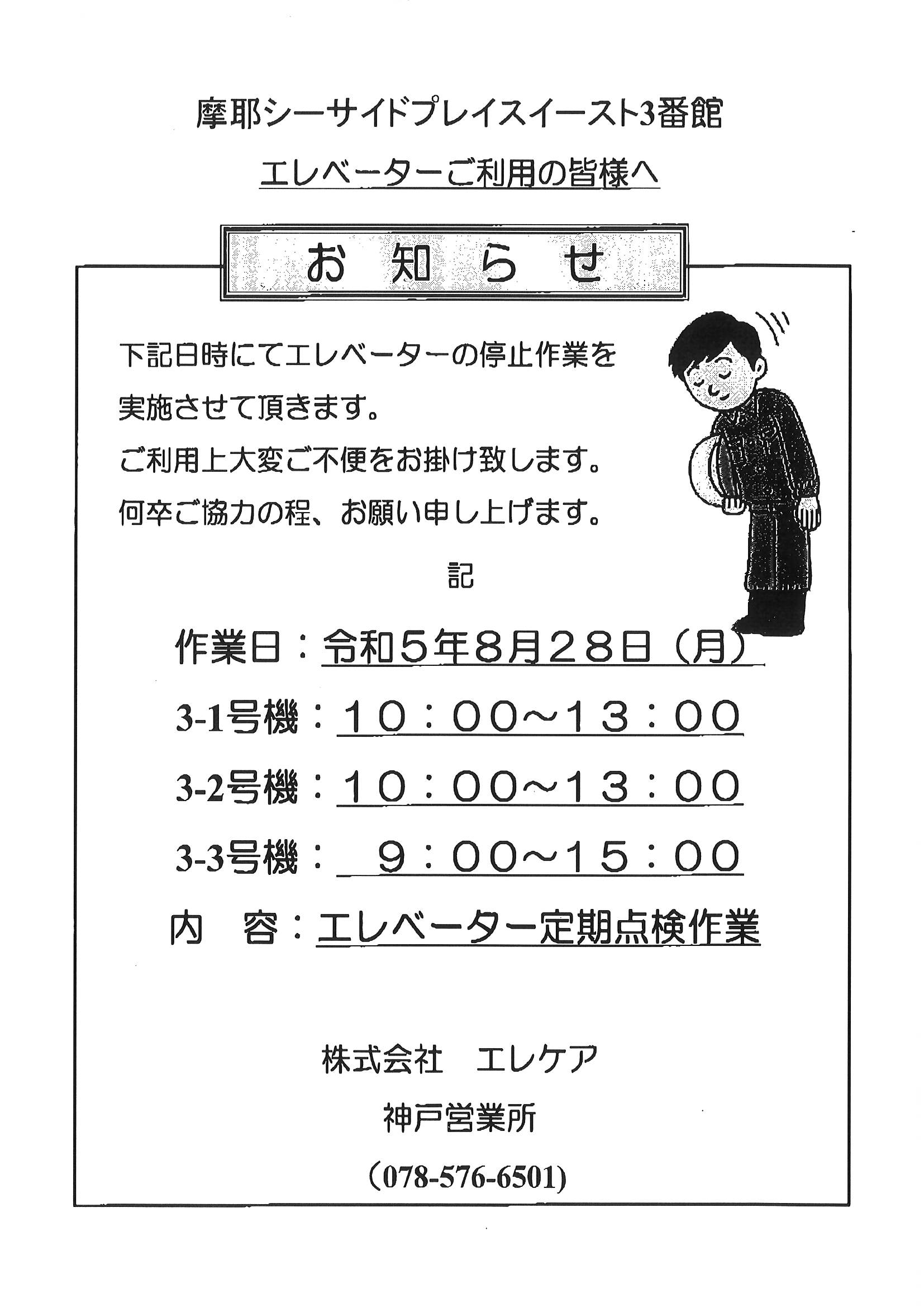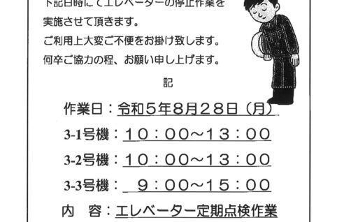 3番館エレベーター点検のお知らせ