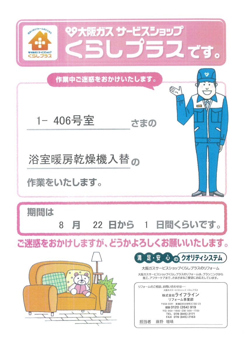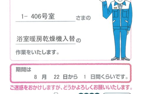 [1番館]リフォーム工事のお知らせ