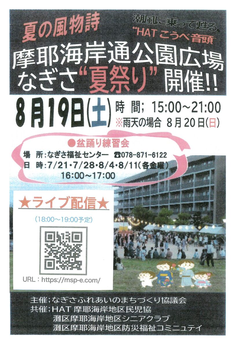 摩耶海岸通公園広場 なぎさ夏祭り開催8月19日15:00~21:00