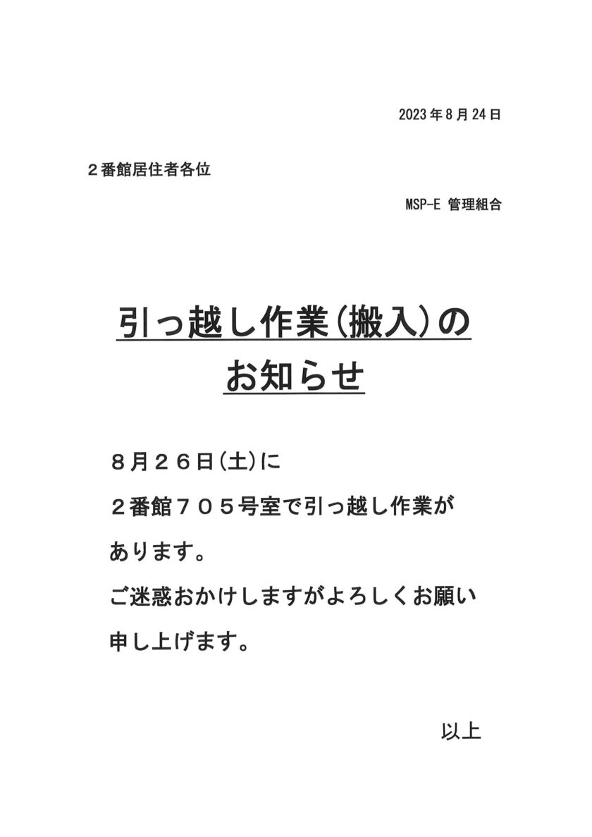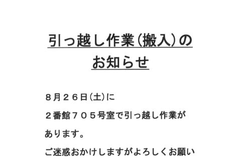 [2番館]引っ越し作業のお知らせ