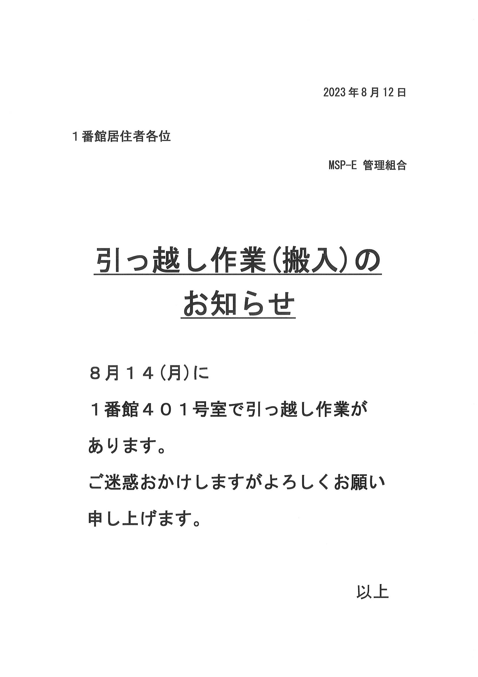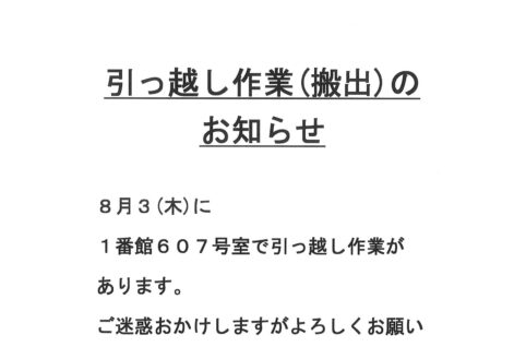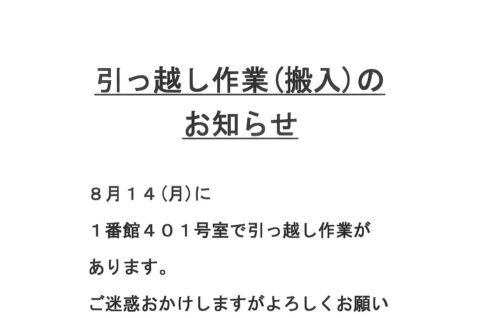 [1番館]引っ越し作業のお知らせ