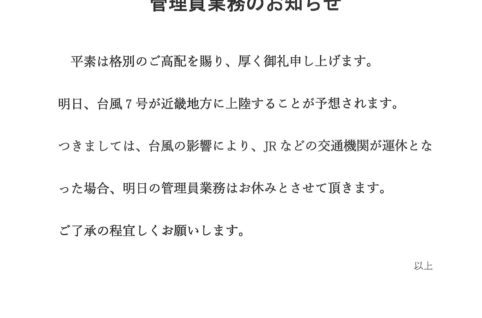 管理員業務のお知らせ