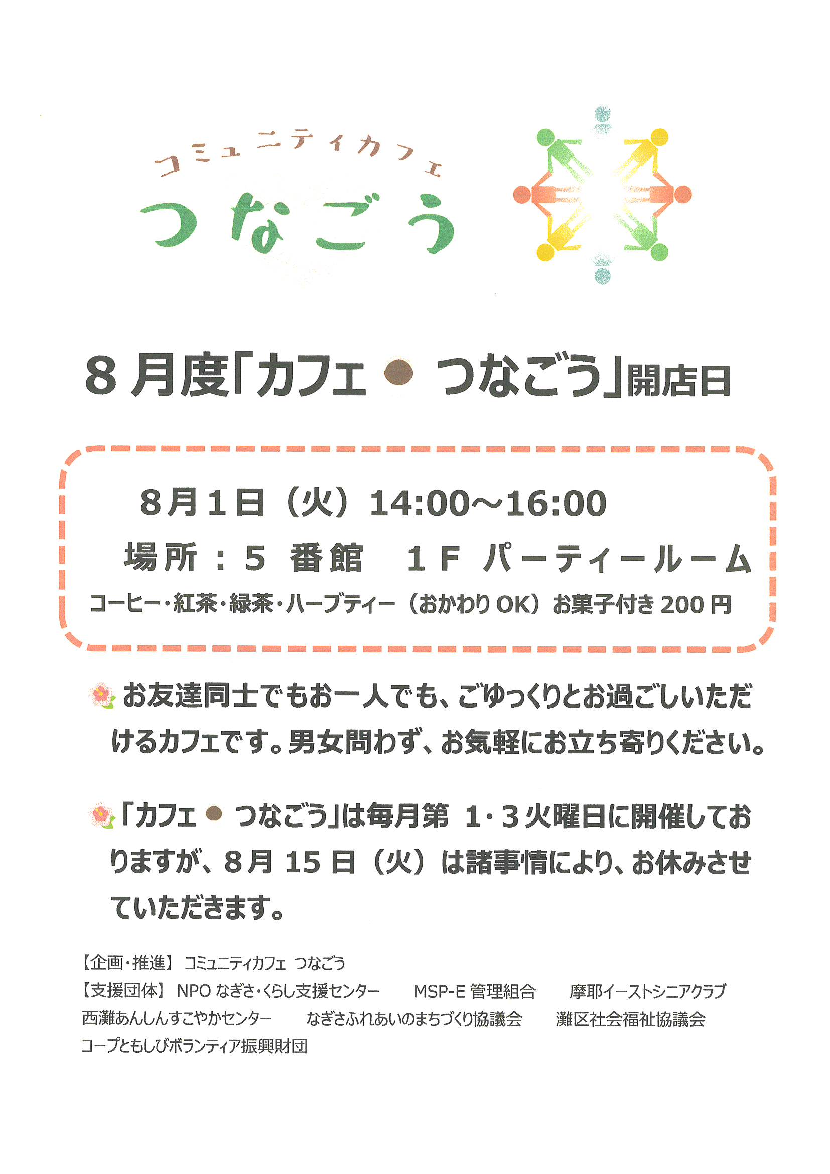 8月度「カフェつなごう」8/1開店