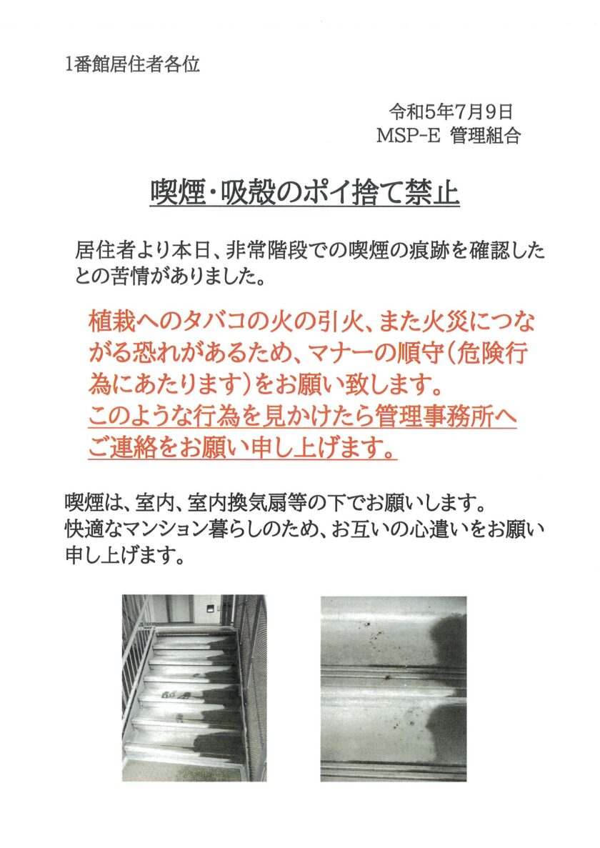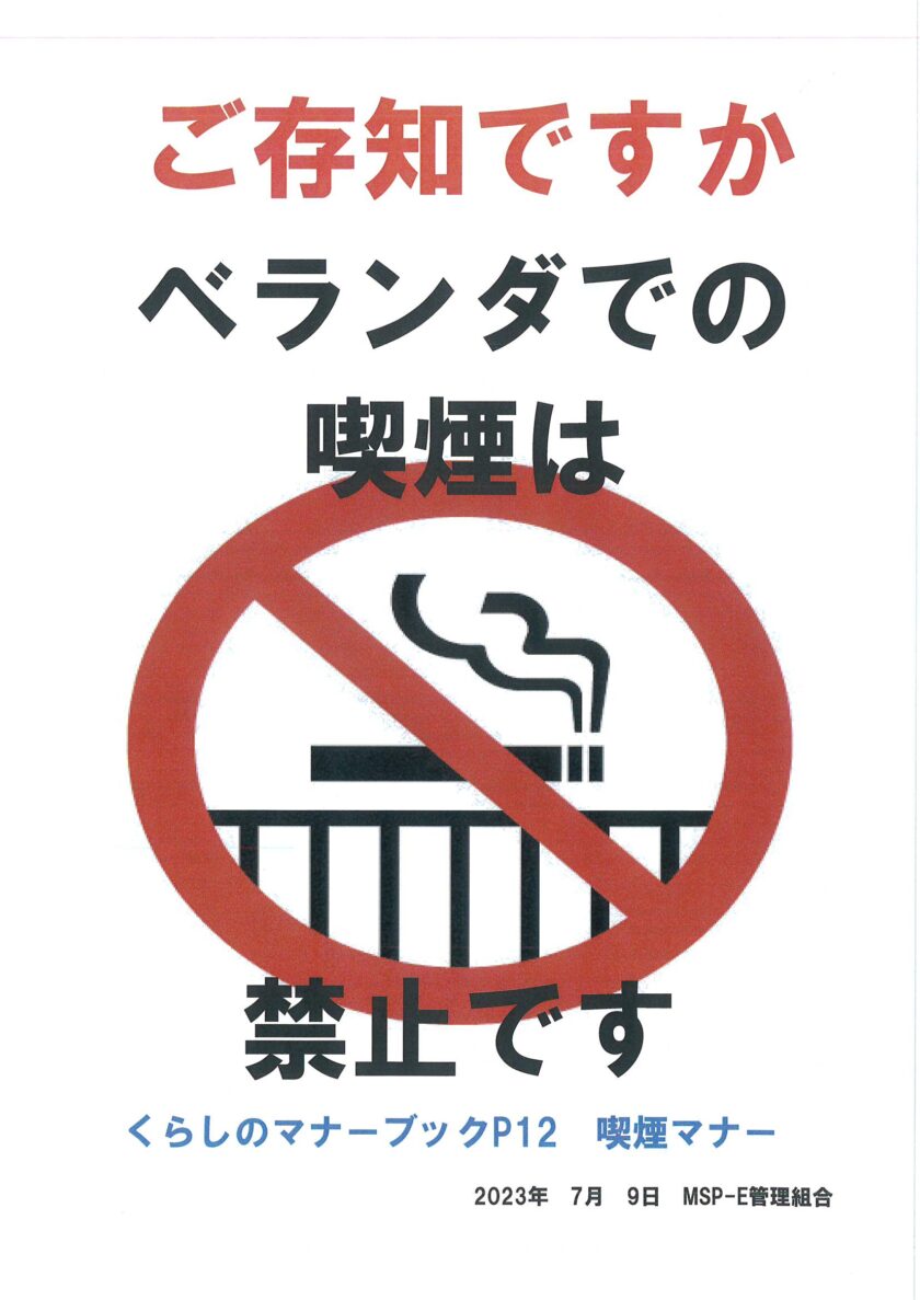 ご存じですか?ベランダでの喫煙は禁止です。