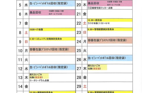 2023年7月度MSP-E月間予定表及びゴミ回収日