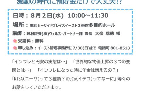 8/2(水)セミナーインフレへの備え「激動の時代に預貯金だけで大丈夫!?」