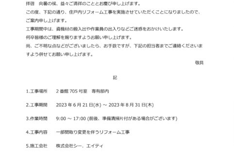 [2番館]リフォーム工事のお知らせ