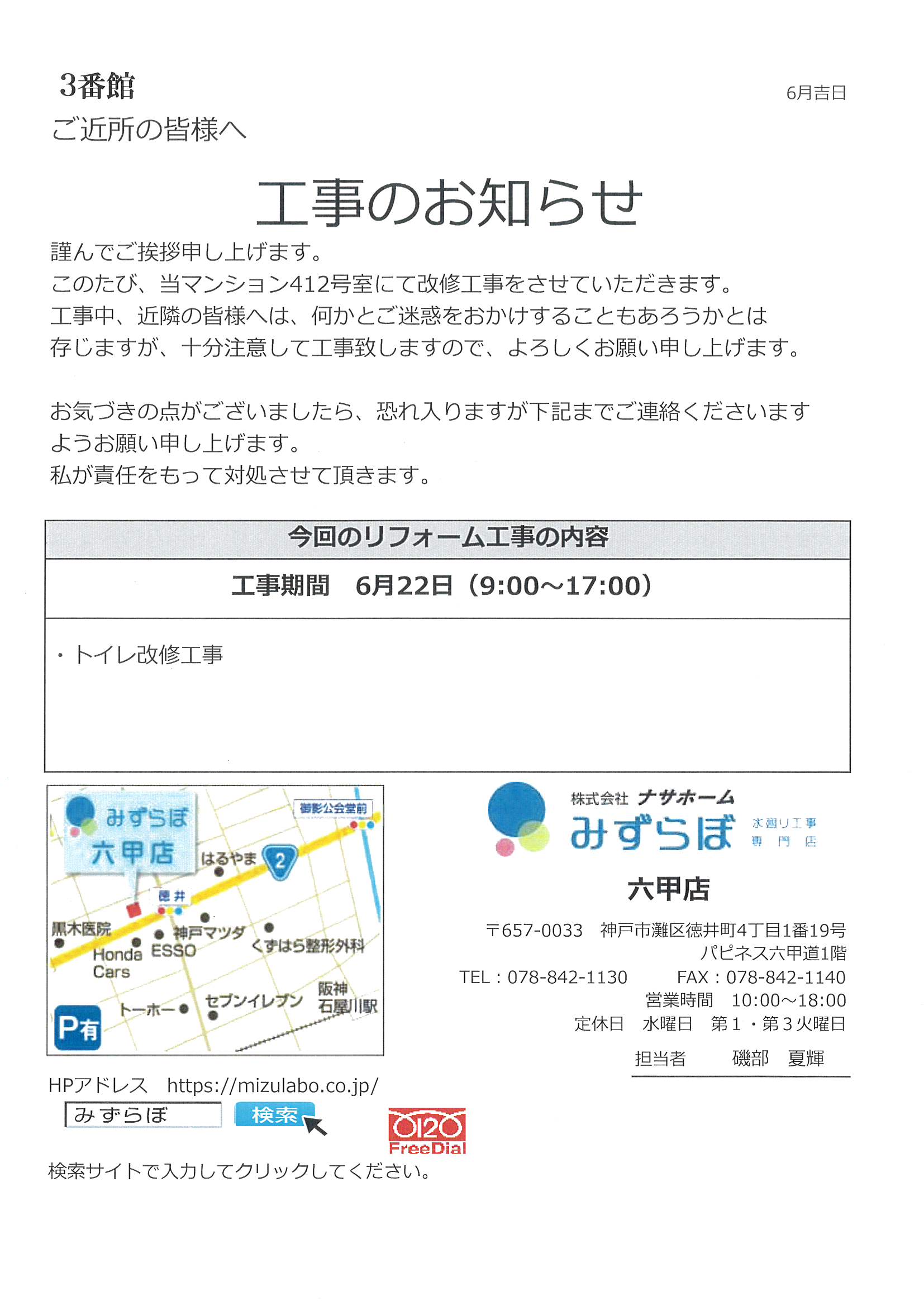 [3番館]リフォーム工事のお知らせ