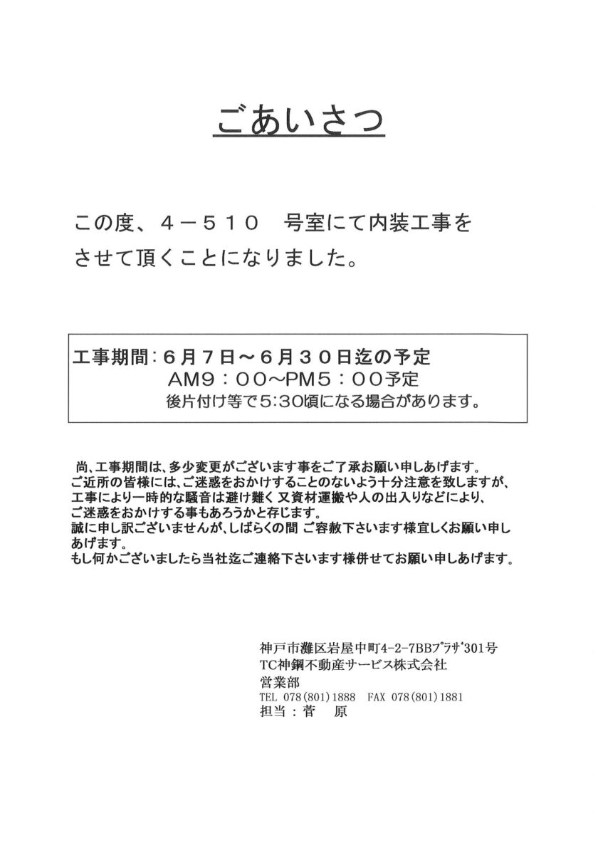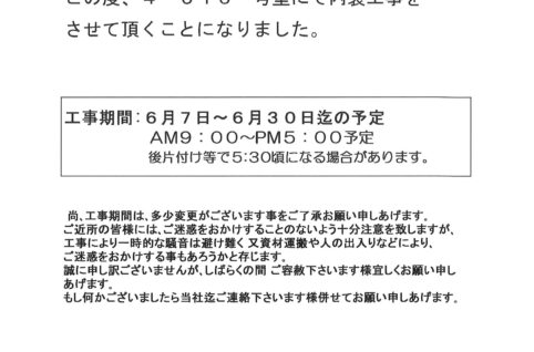 [4番館]リフォーム工事のお知らせ
