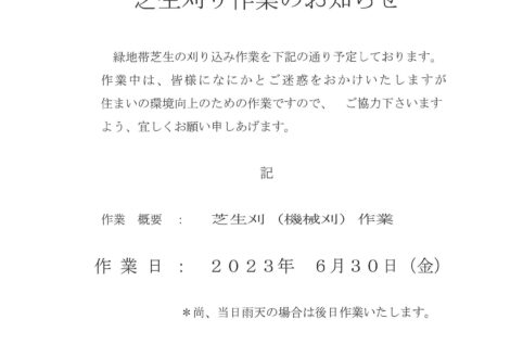 芝刈り作業のお知らせ(6/30実施)