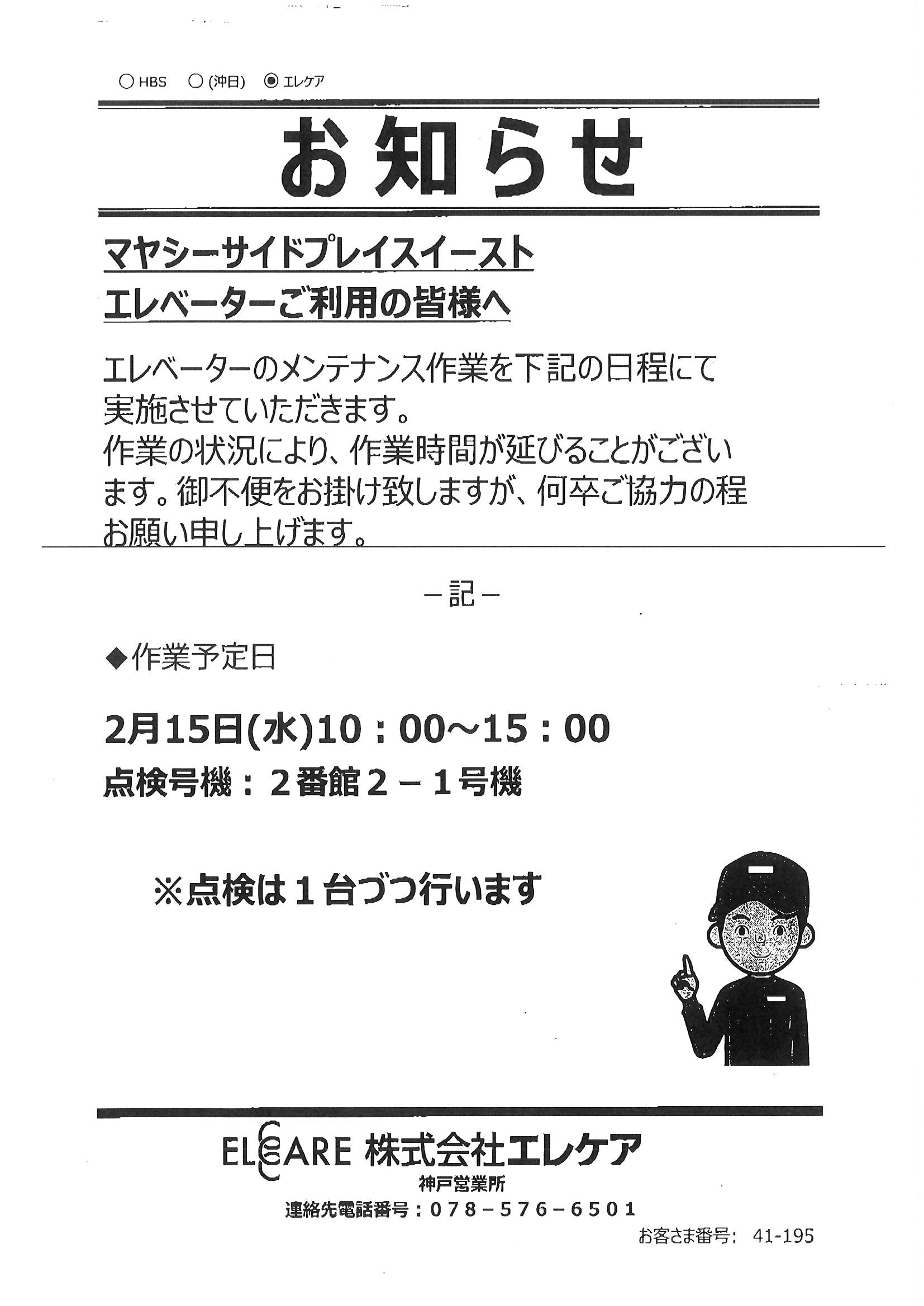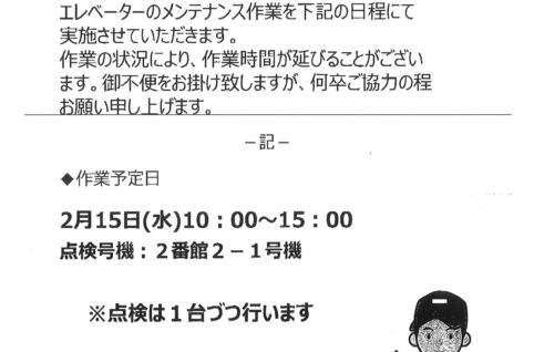 2月15日 エレベーター点検