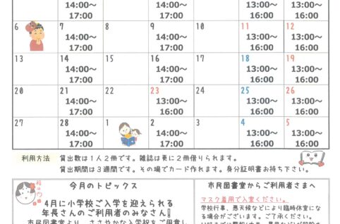 2月号なだのはま小学校市民図書室ニュース