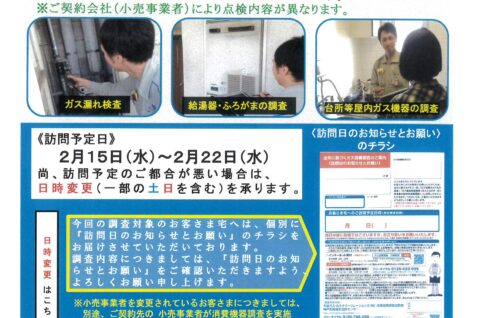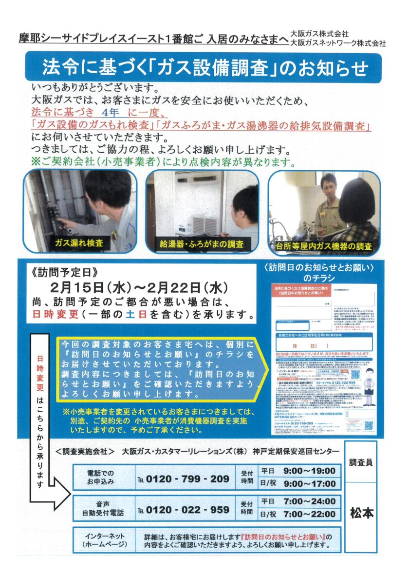 1番館法令に基づく「ガス設備調査」のお知らせ