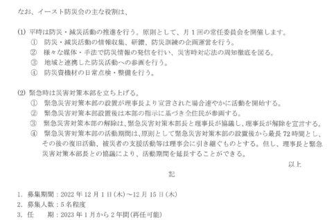 イースト防災会常任委員募集