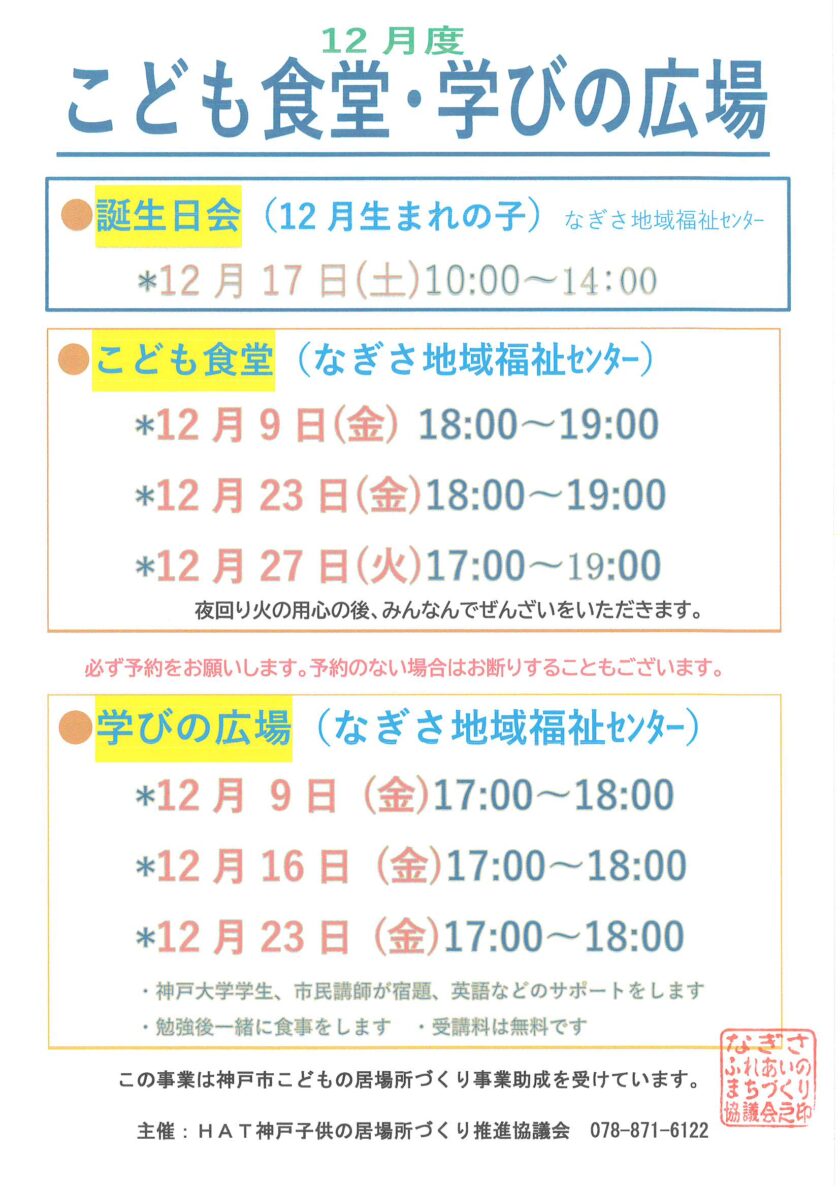 12月度こども食堂・学びの広場