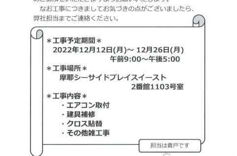 [2番館]リフォーム工事のお知らせ